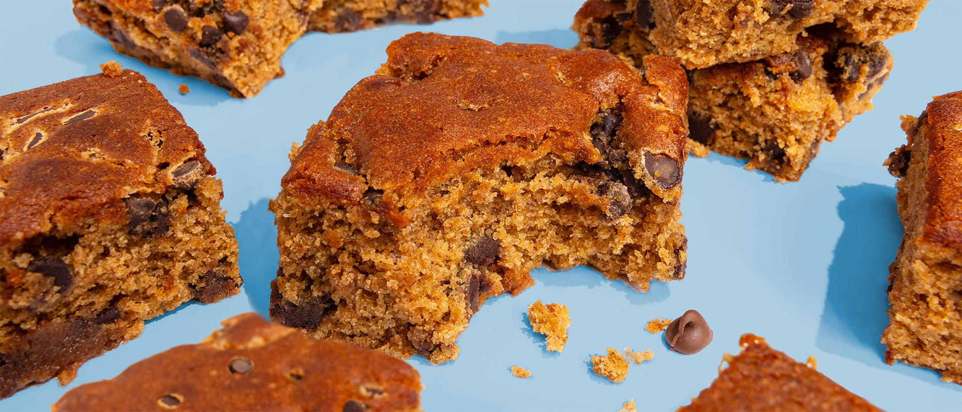 Brown Sugar, Water, Enriched Wheat Flour (Wheat Flour, Malted Barley Flour, Niacin, Reduced Iron, Thiamine Mononitrate, Riboflavin, Folic Acid), Pumpkin, Semi-Sweet Chocolate Chips (Sugar, Unsweetened Chocolate, Cocoa Butter, Soy Lecithin, Natural Flavors), Salted Butter (Cream, Salt), Eggs, Sugar, Palm Oil, Egg Whites, Leavening (Baking Soda, Sodium Acid Pyrophosphate, Monocalcium Phosphate), Salt, Natural Flavors, Ground Cinnamon, Ground Ginger, Honey, Sunflower Lecithin, Wheat Starch, Calcium Stearate, Ground Cloves.